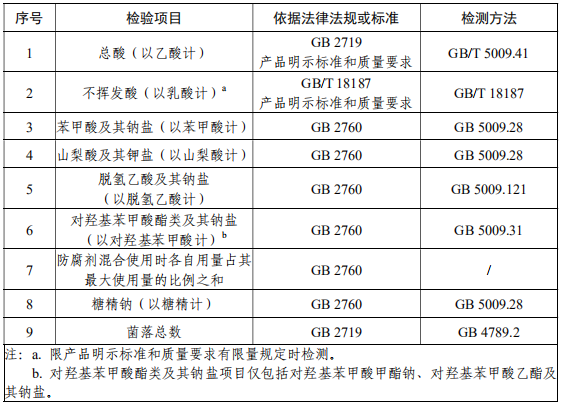 食醋抽檢項目:
